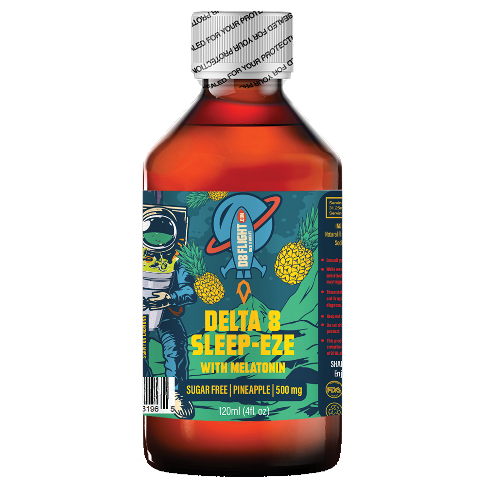 500mg Delta 8 Sleep-EZE Syrup is our most concentrated product and contains a well-balanced blend of Delta 8 and premium botanicals. Formulated for maximum relaxation, our various delicious flavors of Delta 8 Syrup can be mixed with a beverage or taken on its own. D8flight.com Sleep-EZE Delta 8 Syrup formula encourages a good night’s sleep